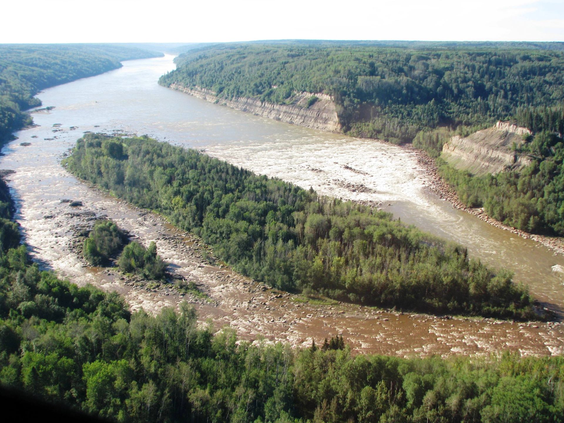 Take an exciting helicopter flight and embark on an unforgettable sightseeing tour, complete with a guided hike at the heart of the Grand Rapids (Athabasca River). Walk among colossal spheroid boulders that created this remote set of Class VI rapids, some reaching over 3 meters in height. These enormous Concretions are some of the largest on the planet, scattered throughout the river valley by the thousands, creating a spectacular, otherworldly landscape. The tour also offers views of incredible scenery, powerful whitewater, and abundant petrified wood, Alberta’s official gemstone. Along the way, you’ll learn about historic Grand Island, once home to the Hudson's Bay Company's narrow-gauge railway. Built in 1889, this push-cart railway moved over 200,000 tons of freight per season and was crucial to the development of Canada’s North and the formation of our nation. Trips to the site by boat with "extended" hiking opportunities are also available.