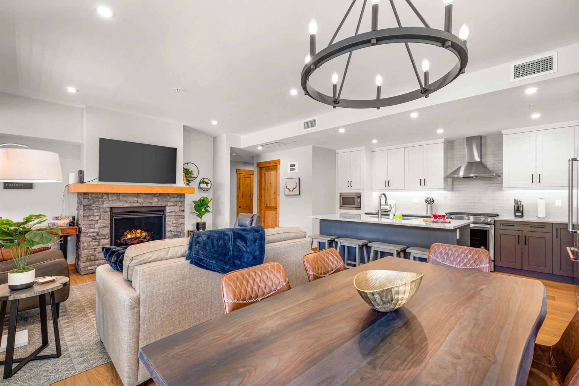 The Tamarack Lodge is the newest Spring Creek luxury building and is the centrepiece of the community’s lively new district, “THE BEAT”. These Canmore vacation rentals promise luxurious accommodations and an unforgettable getaway. Only minutes away from Canmore’s downtown area with even more to keep you busy. Spring Creek’s charming paths and bridges make for the perfect opportunity to explore Canmore. Their spacious vacation rental condominiums range from one to two-bedroom options, all with high-quality finishes and design. Its luxurious rooms provide the comfortable space you and your guests need to experience the best parts of a mountain getaway to Canmore. The Tamarack Lodge brings to life the best mix of modern and rustic mountain-living design. Take a soak in the soothing spa hot tub and melt away sore muscles from a day of skiing. Relax in the luxurious furnishings from a busy day of visiting Canmore’s spectacular natural sites. Refresh your senses with your Tamarack Lodge suite's welcoming atmosphere and naturally bright rooms. The Tamarack is perfect for families or couples looking for a fun mountain adventure with comfortable, convenient, and well-designed options for any group. Be at the heart of it all and stay in Spring Creek Vacations’ Tamarack Lodge. Reserve your dates for an unforgettable mountain retreat to Canmore, Alberta.