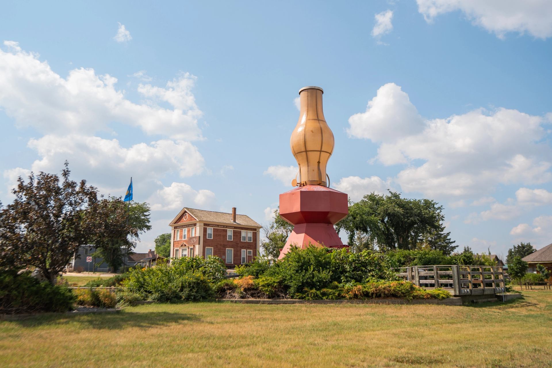 Among Alberta’s “big things in small towns” is the World’s Largest Lamp in Donalda, a small village with a population of just a few hundred. This 13-meter-high (43 ft) steel and fibreglass structure shines brightly every night, overlooking the Meeting Creek Coulee and the northern Canadian Badlands. Located 40 km from Stettler, across the street is the Lamp Museum, home to the world’s largest collection of oil lamps, with over 1,000 lamps dating back to the 1600s. Donalda also offers outdoor activities, including hiking and biking in the Canadian Badlands. The Willow Canyon trail covers 129 acres, from the coulee rim to the valley bottom. For a refreshing break, Buffalo Lake’s beach and campgrounds are just 49 km away.