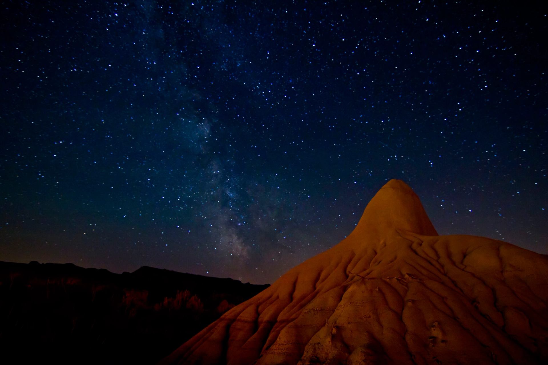 There exists a place where vermilion and indigo morning skies reflect off other-worldly banded hills, bathing the river valley with a welcoming radiance. Where the wind brings soothing scents of sage and sweetgrass from the rolling prairie plateaus. Where rattlesnakes sun themselves next to the fossils of giants and the raptors of today soar over the echoes of their ancestors. Where the coyotes serenade the sun as it dips below the horizon before a blanket of vibrant stars, unhindered by the lights of mankind. It’s a cosmic sight that will take your breath away.