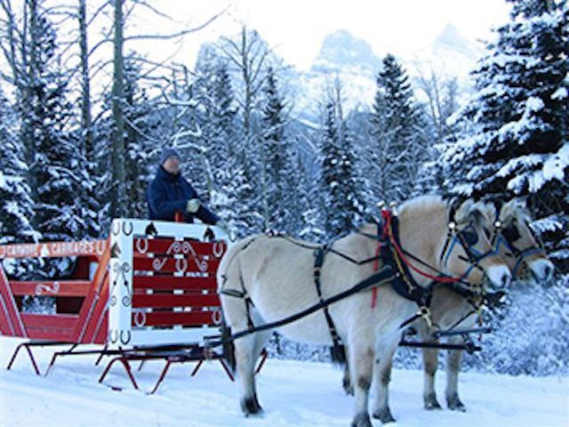 Situated across from the Canmore Helipad, this family-run horse ranch is bordered by a mountain creek and boasts several kilometres of forest trails. Here you’ll find horses, of course, but also a log BBQ gazebo and a donut tent with a huge fireplace in the middle, surrounded by picnic tables. With its rustic charm and convenient location, Canmore Ranch is a destination for weddings, family reunions, staff parties, and other large events. In summer, drop by for a traditional horse-drawn carriage or wagon ride through the bush for a taste of the old west; in winter, cuddle up with loved ones in a horse-drawn sleigh or cutter after the snow has fallen.