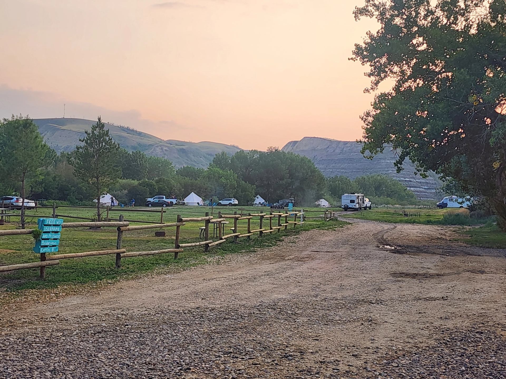 Drumhellers best hidden gem, Bridgeviews Yurt Glamping and campground. Nestled in the scenic valley surrounded by prehistoric hills and bordering Rosebud River. This unique location offers a true "welcome" camping experience unlike any other. A communal greenhouse serving hot coffee as a place to gather, play games with fellow campers, and experience the eclectic decor will have you feeling nostalgic. A free garden area and old-school playset will remind you what really matters community and family. Flush toilets and hot showers complete your glamping Yurt stay. Wake up in fresh linens on a traditional bed with many comforts in these unique themed bell tents. It is a truly unforgettable experience. Or enjoy all the scenic grounds offered in your own RV or tent unit. It feels like you are entering a different world, as you drive down the tree-lined entrance and are greeted with smiles and honour system amenities. Enjoy your stay!