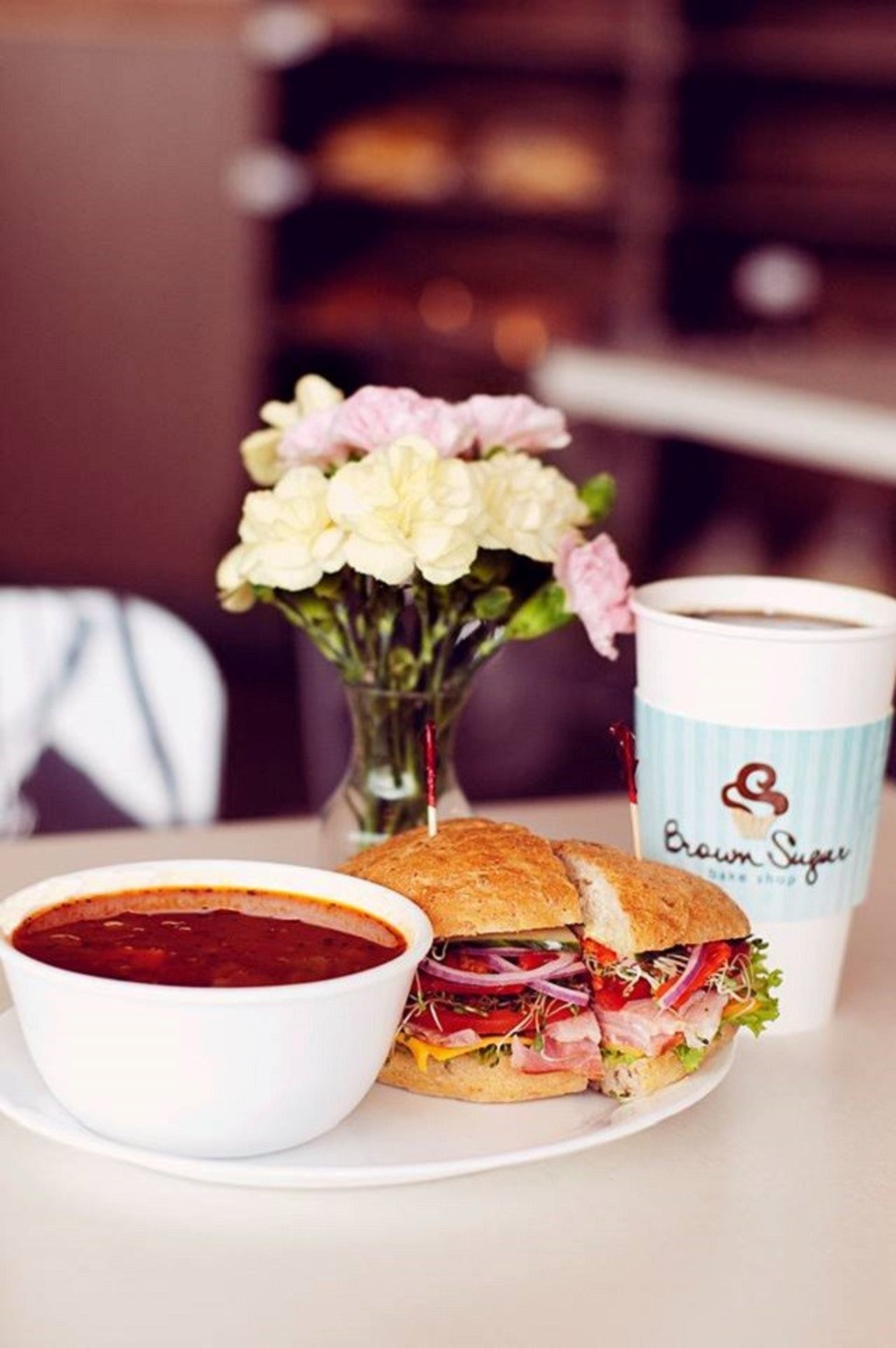 Come in for lunch and enjoy their hot and fresh house-made soup or a yummy Bun-wich. Real local meat from Hirshe roasted in their oven and sliced for a delicious sandwich on their homemade buns from scratch! Enjoy a Cup of their Medium Roasted Organic Coffee, Tea, Espresso, Latte, and more. Check out their Gluten-Free items. Including Nanaimo bars, Dream Squares, Flourless Brownies and Monster Cookies!
