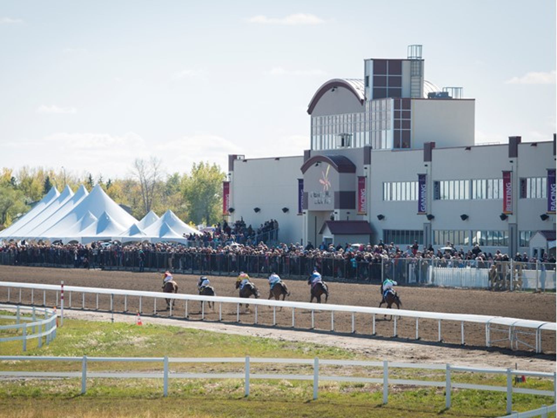 Located just five minutes off Highway 2, Century Downs Racetrack and Casino offers the ultimate horse-racing experience. With live harness races every weekend from March to October, you can't lose! You can watch the races outside on the family-friendly apron which boasts a food truck, and drink station with easy access to the winner's circle, and horse betting stations. There's room for the family inside too upstairs in the Homestretch Restaurant! Inside the casino comes complete with 600 slot machines, electronic table games, and an off-track betting area. Don't miss a bite to eat in The Derby Lounge which boasts some awesome specials and a wide variety of food & drink options! They hope you choose Century Downs as your entertainment destination!