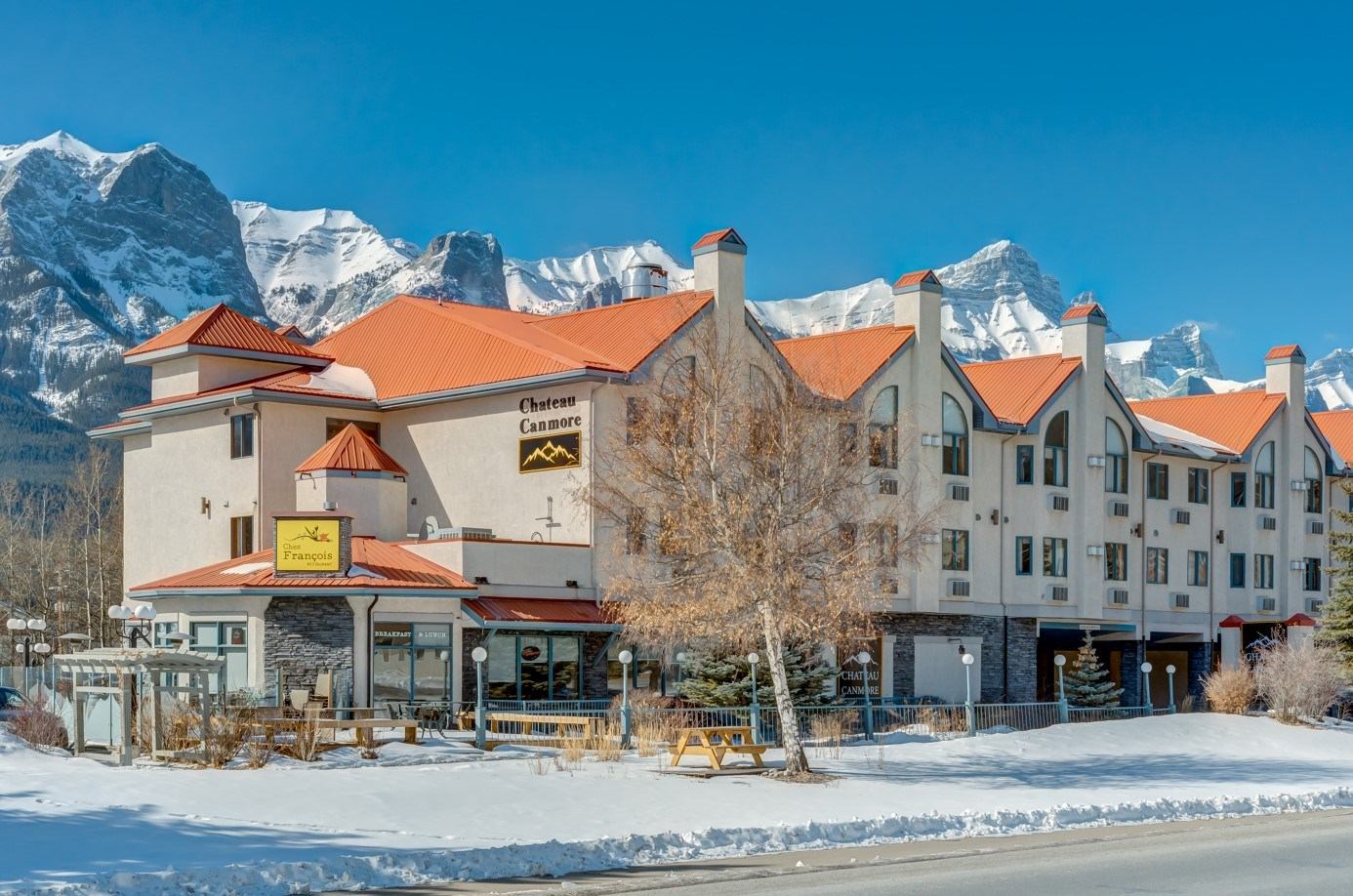 Chateau Canmore is ideally situated at the west end of Canmore, 5 5-minute walk to downtown and 5 5-minute drive to Banff National Park and Kananaskis Provincial Parks. They are a quick 20-minute drive to the town of Banff and a 50-minute drive east to the city of Calgary. The perfect hub for all your adventures while exploring the Canadian Rockies. They offer spacious suites with double, queen, and king options. Their restaurant, Chez Francois - locally famous for great food and service is open for breakfast daily from 7 am and the food is delicious. Fitness facilities include a large gym, indoor swimming pool, outdoor hot tub, and a dry sauna. For small meetings and conferences, their property is well set up with a large meeting room for up to 120 persons that can be split off into 2 separate rooms. As well they have 2 smaller rooms for 10 and 20 people. All this combined with friendly and professional accommodating staff makes for the right choice. Come enjoy quality and comfort!