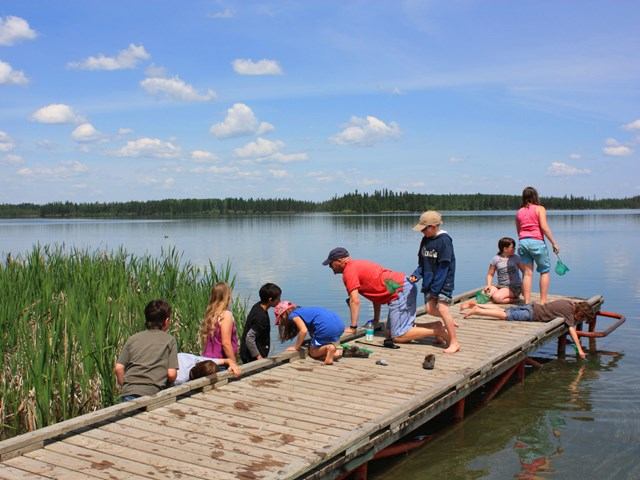 At Crimson Lake Provincial Park, three natural regions — boreal forest, foothills, and parkland — converge. While bogs and fens cover much of the park; sand dunes and sand plains cover most of the rest. In the south of the park, you’ll see features more typical of the boreal forest, such as black spruce bogs and tamarack-swamp birch fens. The fecund park is ideal for wildlife watching and birding. Scan the forests for moose and deer and keep your eyes on the skies — or down by the water — to spot birds like sandhill cranes, solitary sandpipers, and northern pygmy owls. The park is also a destination for a wide range of outdoor sports in both summer and winter, such as powerboating, ice-fishing, hiking, and cross-country skiing.