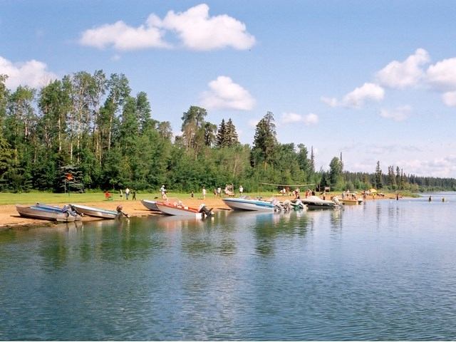 Cross Lake Provincial Park, surrounding Steele Lake in north-central Alberta, is a scenic, family-friendly destination offering a mix of lakeside relaxation and forested recreation. Open mid-May to early September, the main campground features 130 powered sites (15/30 amp), with options for accessible camping. Visitors enjoy flush and vault toilets, showers, water taps, firepits, firewood for sale, a boat launch, fish-cleaning stations, a playground, picnic shelters, horseshoe pits, and a large sandy beach perfect for swimming and sandcastles. For a quieter experience, George’s Point offers a hike-in or boat-access tenting area with just seven basic sites, lake views, and a peaceful atmosphere. Recreational options include hiking, mountain biking, canoeing, kayaking, fishing, water-skiing, power boating (speed limits apply), and birdwatching. In winter, enjoy cross-country skiing and ice fishing. Cross Lake is the ideal escape for nature lovers of all kinds.