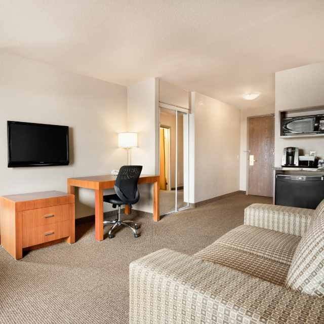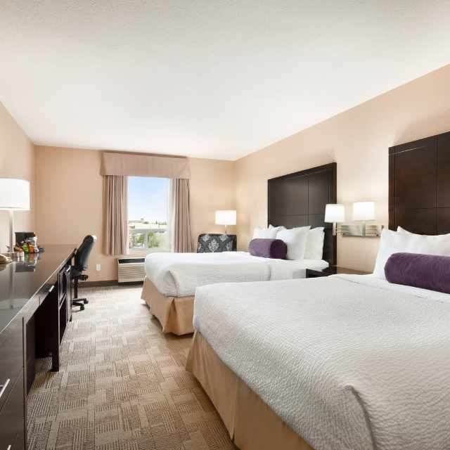 Days Inn Calgary Airport is a Chairman's Award-winning property conveniently located 10 to 15 minutes from the Calgary International Airport and 15 minutes from downtown. Calgary is brimming with fantastic entertainment, shopping and outdoor fun, all within easy walking or a short drive. The hotel features 76 spacious rooms and suites with clean, contemporary décor and plenty of thoughtful in-room amenities to make your stay unforgettable. From standard rooms to kitchenette suites, business class suites and deluxe suites with a jetted bathtub and fireplace, you are sure to find the perfect fit here. Days Inn Calgary Airport Hotel boasts excellent all-inclusive amenities, including an indoor water slide, pool and hot tub, fitness room, free daybreak cafe breakfast, free wireless high-speed internet, free local calling, pay laundry facilities and complimentary shuttle to and from the Airport.