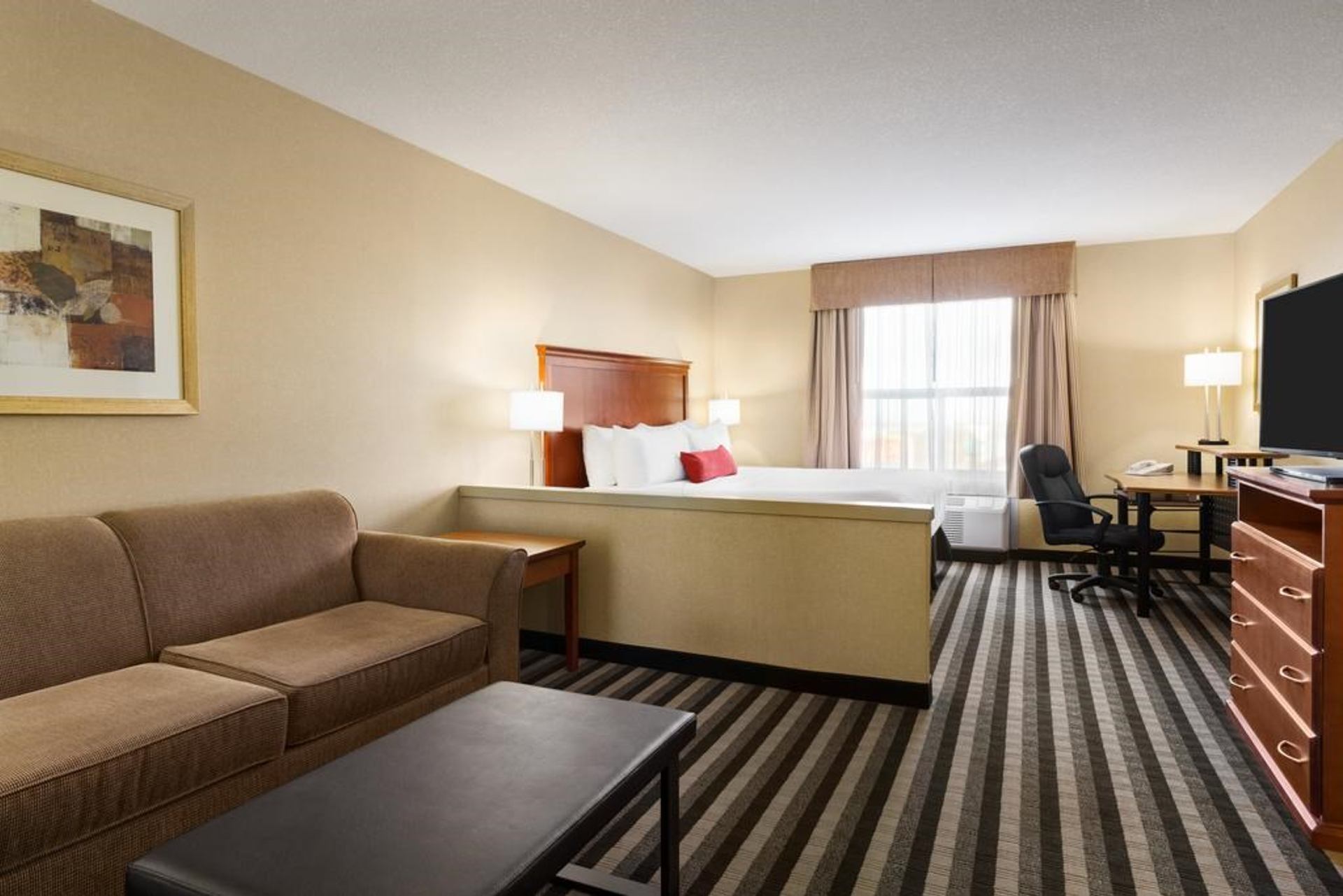 When it comes to a good night's sleep, state-of-the-art amenities, and hotels near Edmonton Airport, the Days Inn & Suites Edmonton Airport is one of the top South Edmonton hotels in the area. Conveniently located off Queen Elizabeth II Highway, the hotel is less than a ten-minute drive from Edmonton International Airport and less than 30 minutes to the downtown core by car. They offer complimentary breakfast service and have an on-site Ricky's All Day Grill. Guests can also enjoy free parking, meeting room space, pet-friendly rooms and a complimentary 24-hour hotel shuttle service.