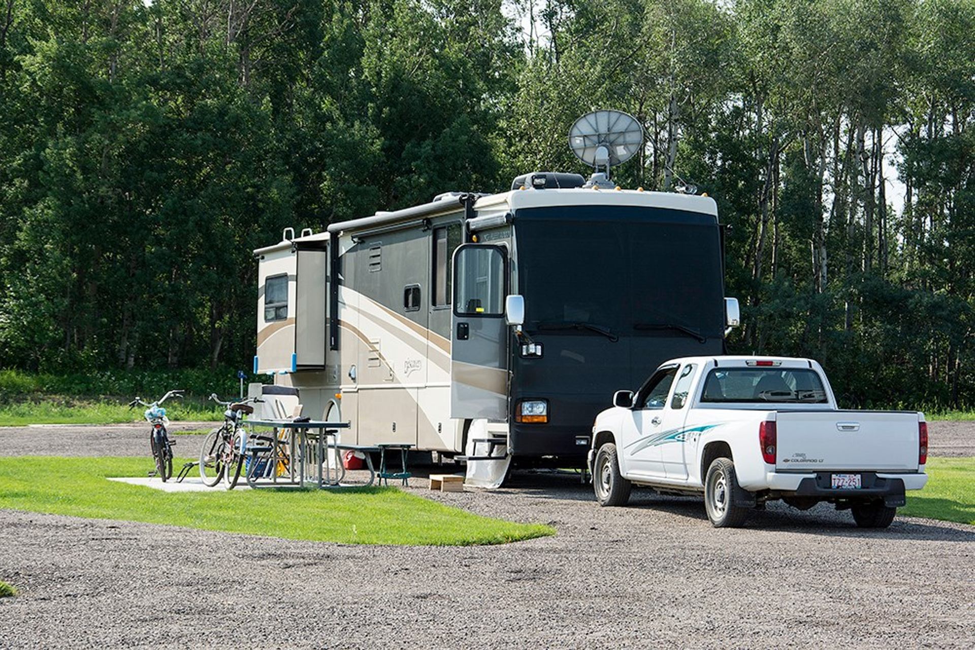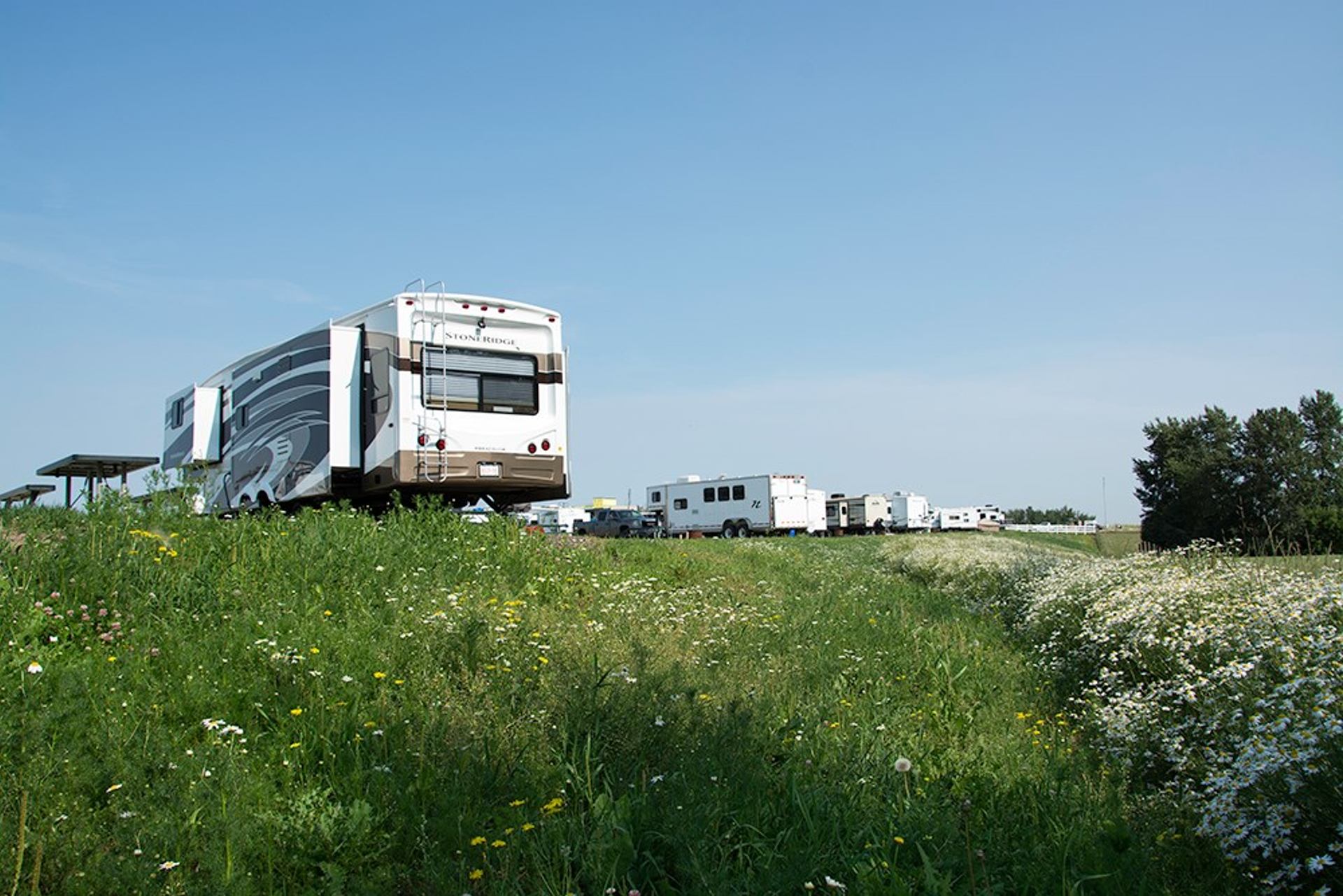 New campground in Spruce Grove, Alberta. Located about 15 minutes from West Edmonton Mall and on the way to Alaska and the Rocky Mountains in Jasper. 240 large pull-thru sites with full hook-ups. Amenities include a laundromat, showers, a store, 2 Sani-dumps, a dog park, a driving range, fire pits, luxury ensuites, plus more.