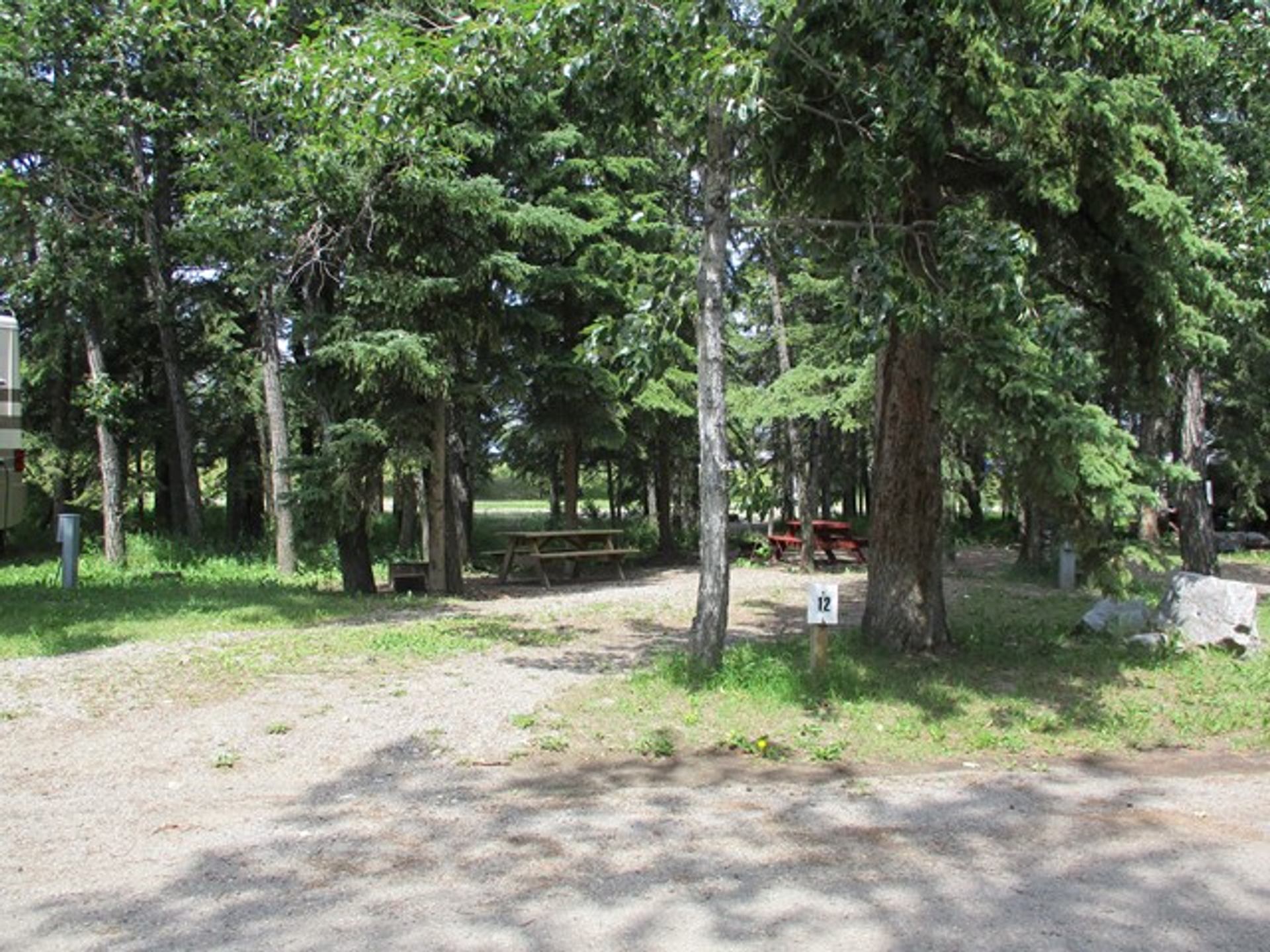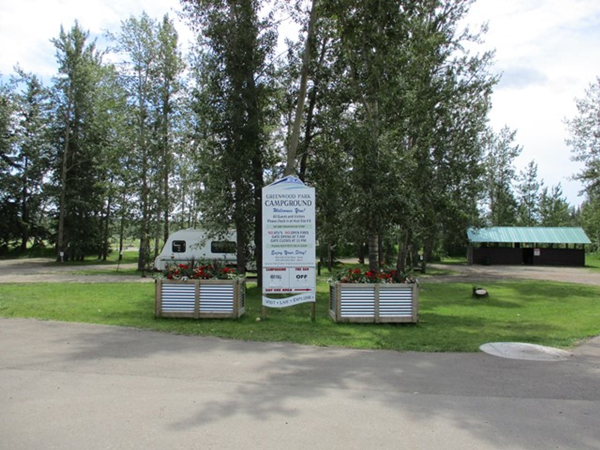 Greenwood Campground is located on the west bank of the Red Deer River, two blocks south (left) of the stoplight. It is within walking distance of all shops and services. It has 37 sites including 2 full-service sites, 17 power-only sites, and 18 un-serviced sites with picnic tables, fire pits, and firewood. It also contains a sani-dump station and potable water, a gazebo, and a playground.