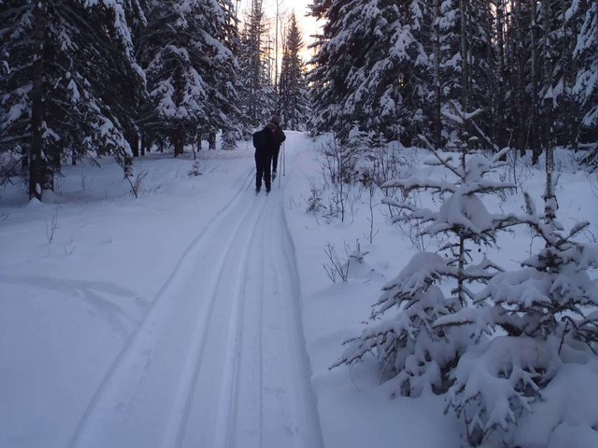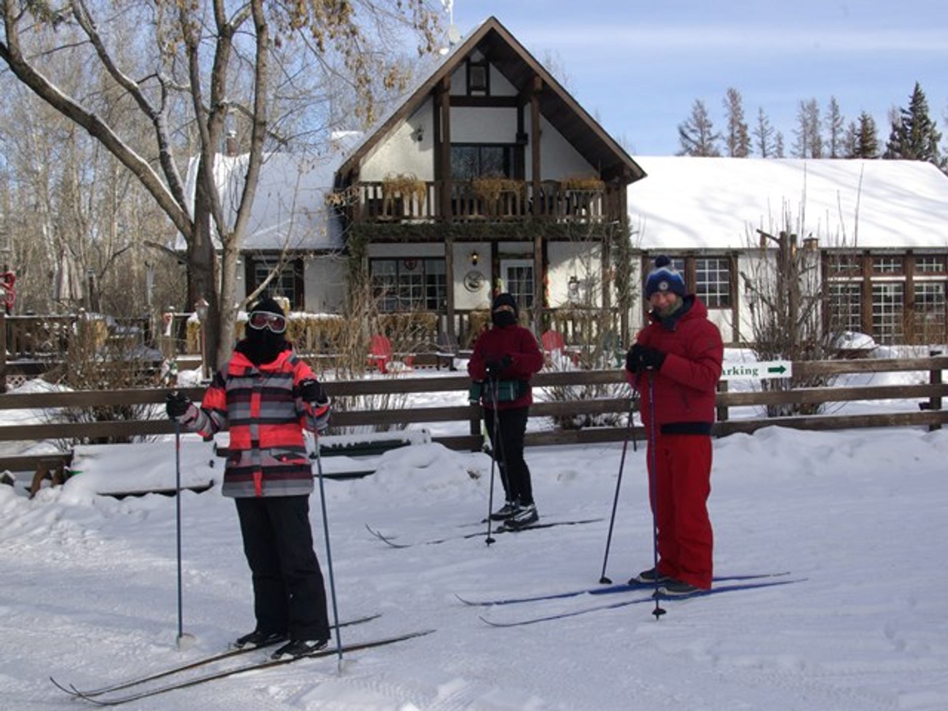 You are XC skiing over pristine, groomed trails with small hills, valleys, and their private lake on 4 loops, including some advanced hills on the third loop. They offer approx 14 km of groomed trails in the Boreal forest of Northern Alberta. Leave from your own guest room door at Hamilton House Inn. There are approximately 20 pairs of skis and boots for rent, fitting almost everyone. They also offer five sets of snowshoes to make your own trail into the wilderness. Clean, crisp air with deep forest trails or wide-open spaces, sunrises or sunsets can lead the way, or the northern lights waiting for you on a night ski (headlamp provided) out on the lake bed. They see moose, deer, occasional coyote or lynx and/or their tracks, and many birds on each trip.