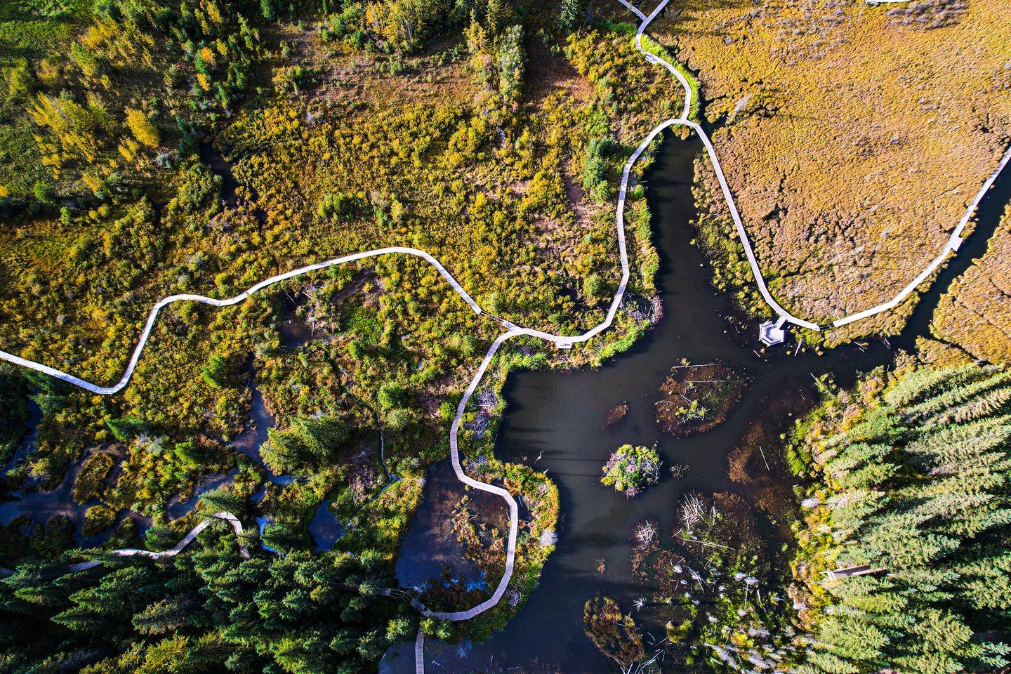 The world’s longest freshwater boardwalk is a great family outing that showcases the local wetland system around Maxwell Lake. Hinton’s Beaver Boardwalk winds for over 3 km through marsh, forest, and floating walkways, offering a close-up view of an active beaver lodge and dam. It’s a unique, accessible experience for all ages—ideal for a peaceful walk, birdwatching, or simply enjoying Alberta’s boreal beauty. Along the way, explore interpretive signs, outdoor classrooms, and lookout spots teeming with birds, butterflies, and wetland wildlife.