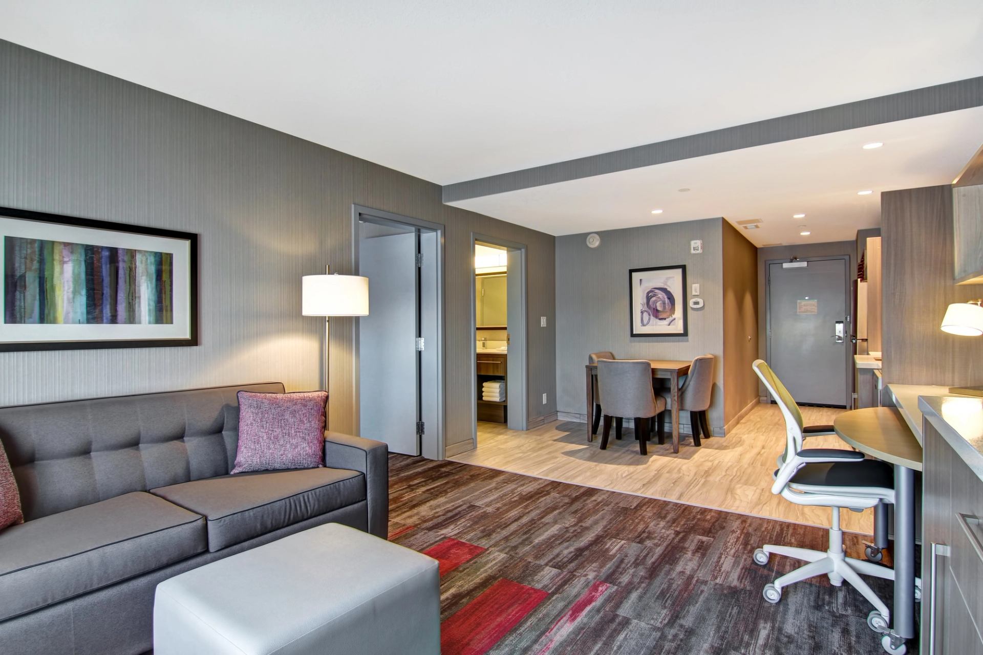 Stay awhile at their new, pet-friendly Home2 Suites by Hilton Edmonton South. The convenient location puts you near a variety of shops and restaurants. Each suite features a separate living area and complimentary WiFi, plus eco-friendly amenities. You’ll feel right at home in the spacious suites offering a well-equipped kitchen complete with a full-size refrigerator, dishes, microwave, and flatware.