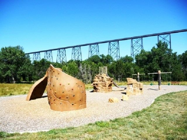 Indian Battle Park, located in the Oldman River Valley, is comprised of the 5.0 km river bottom trail system, several booked and drop-in picnic areas, a natural playground, and is home to the Fort Whoop-Up Interpretive Centre. The park also features key historical attractions like the Medicine Stone, Coal Banks Kiosk, information on the Incline Railway, and a High Level Bridge information plaque. The trails connect to the river access points for canoeing, tubing, and fishing alike.
