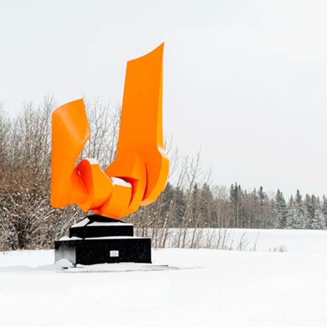 The Kiyooka Ohe Arts Centre is a year-round, sustainable, art-in-nature destination, founded by distinguished Albertan artists, Harry Kiyooka and Katie Ohe. The Centre is dedicated to the research, exhibition, education, and documentation of contemporary visual arts and aims to be Western Canada's largest outdoor sculpture park. KOAC is a not-for-profit public art Centre that focuses on; artist-led lectures and workshops, a sculpture park, a botanical garden and beekeeping tours, and exhibitions of local and international contemporary art. As a cultural attraction, the Centre will provide personal interaction with contemporary art for the surrounding community, Calgarians, and International tourists. As Katie Ohe likes to put it, the focus of the Centre will be on “the three R’s” – Retreat, Research and Residence. Therefore, the KOAC concept comprises an art gallery, studio spaces for emerging artists, a research library, and a vast collection of artwork amassed over more than six decades, all surrounded by a large-scale sculpture park in rehabilitated wetlands and a woods sanctuary. Some of the different buildings in the Art Centre include the founders’ gallery residence, a modern structure that will be transformed into an interpretive gallery, workshop area, and library research center. The existing studios, where Katie and Harry currently practice, will be shared with emerging artists to provide multiple studio spaces and host art workshops. The Centre’s future pavilion will house the KOAC collection and programming and other art exhibitions.