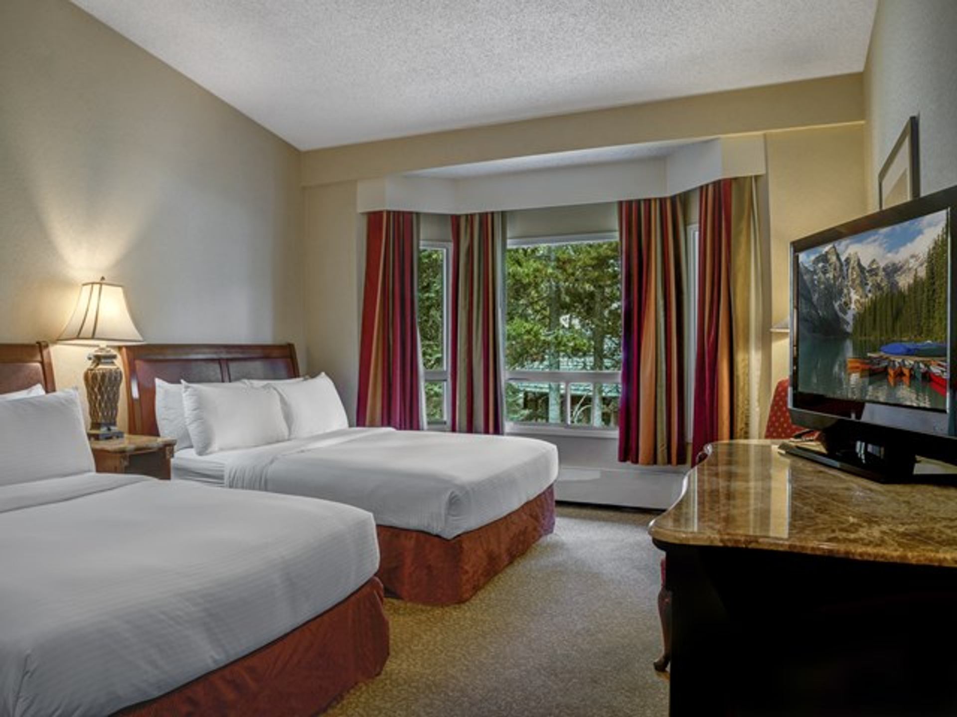A resort for all seasons, the Lake Louise Inn features a wide variety of hotel rooms, suites, and condos set in a spectacular wooded setting with stunning views of the Canadian Rockies. Come and enjoy a great location near Lake Louise Village and the Lake Louise Ski Resort and experience the best of Banff National Park. All guest accommodations provide the comfort and convenience of modern amenities like free Wi-Fi in a beautiful and rustic mountain setting. Individual room and suite styles may feature kitchens, balconies, patios, fireplaces, or Jacuzzi tubs. You can also take in the spectacular mountain scenery through floor-to-ceiling windows as you relax and unwind in our heated indoor pool and whirlpools. Guests can also enjoy our many dining options, from cozy fine dining at Legends Restaurant or après-Ski at Explorers Lounge to a pizza night in Timberwolves. Lake Louise Inn offers a limited number of pet-friendly room types and rooms.