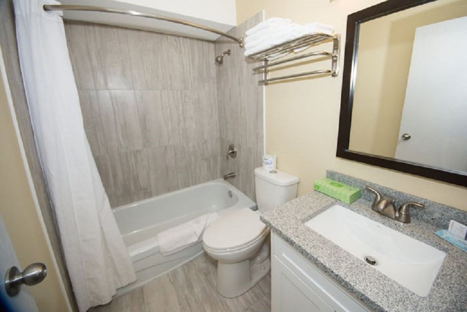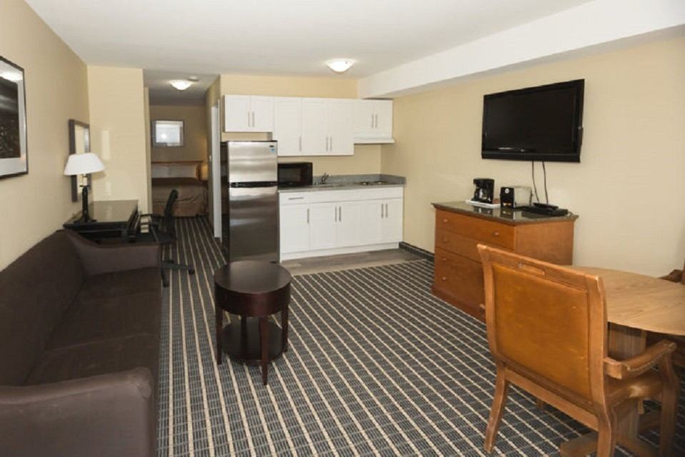 Choose from 38 rooms with five family suites (two beds and a separate room). Rooms include a refrigerator, hot plate, microwave, coffee maker, cable TV, free Wi-Fi with weekly housekeeping as well as ample parking for vehicles of all sizes with plug-ins. You also have full access to the amenities of the neighbouring Travelodge Hotel, which includes a water park, fitness room, and restaurant.