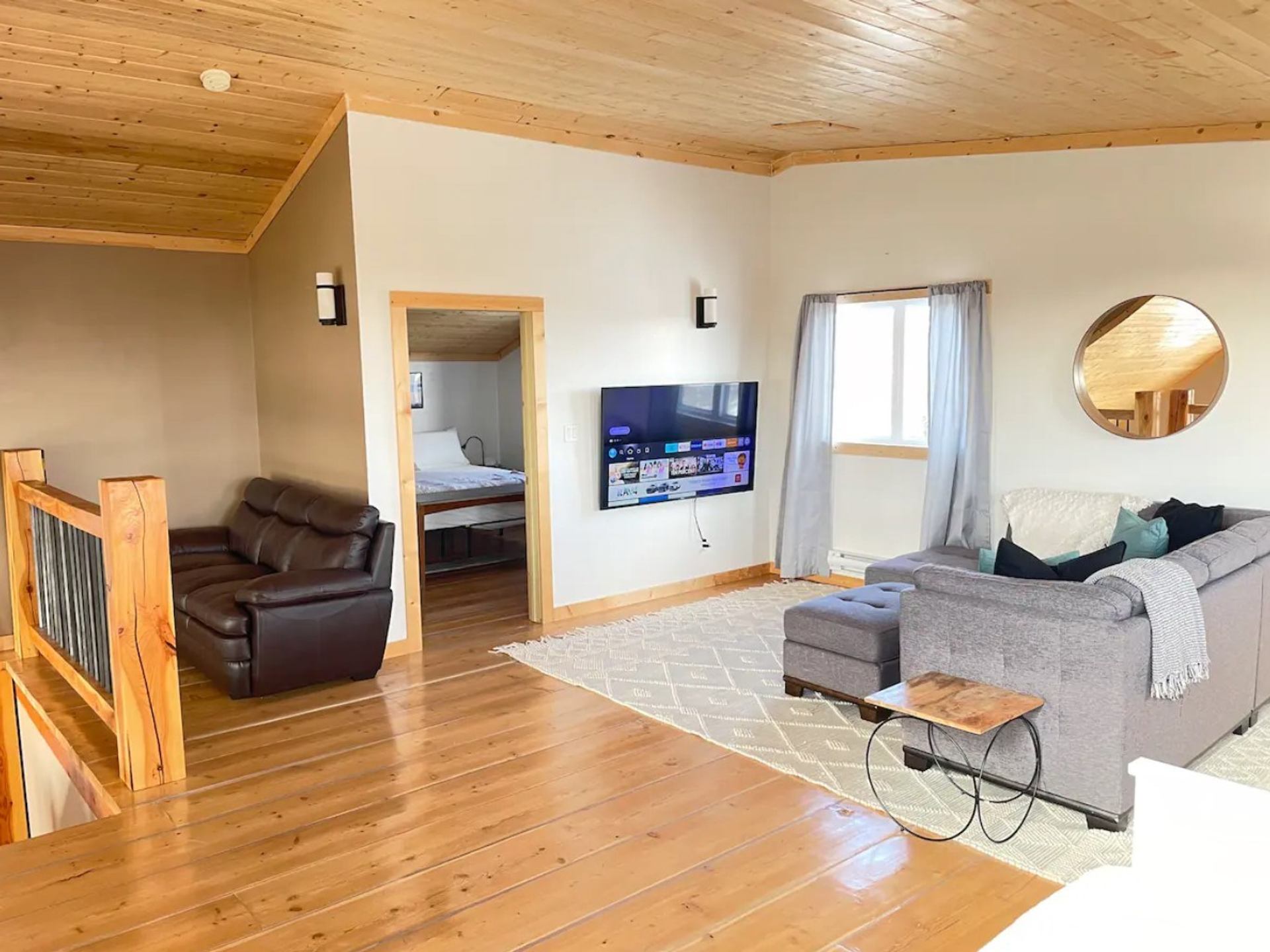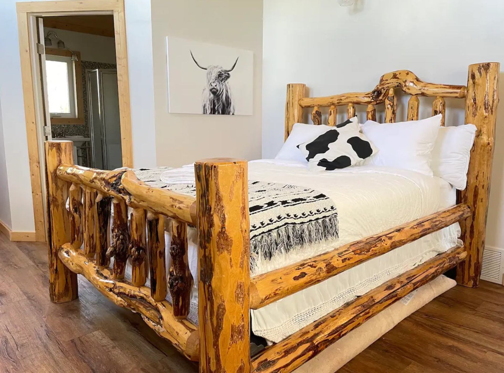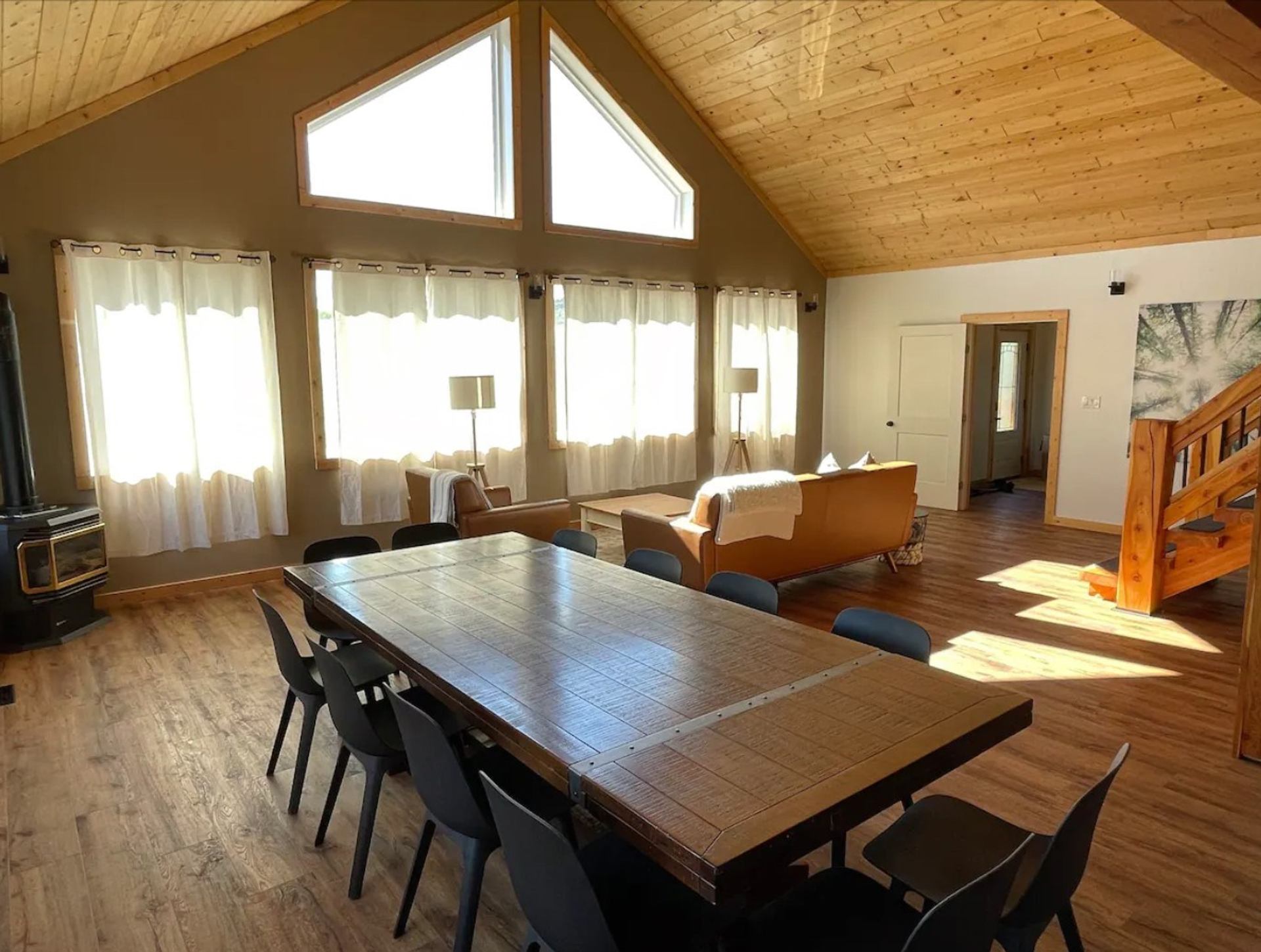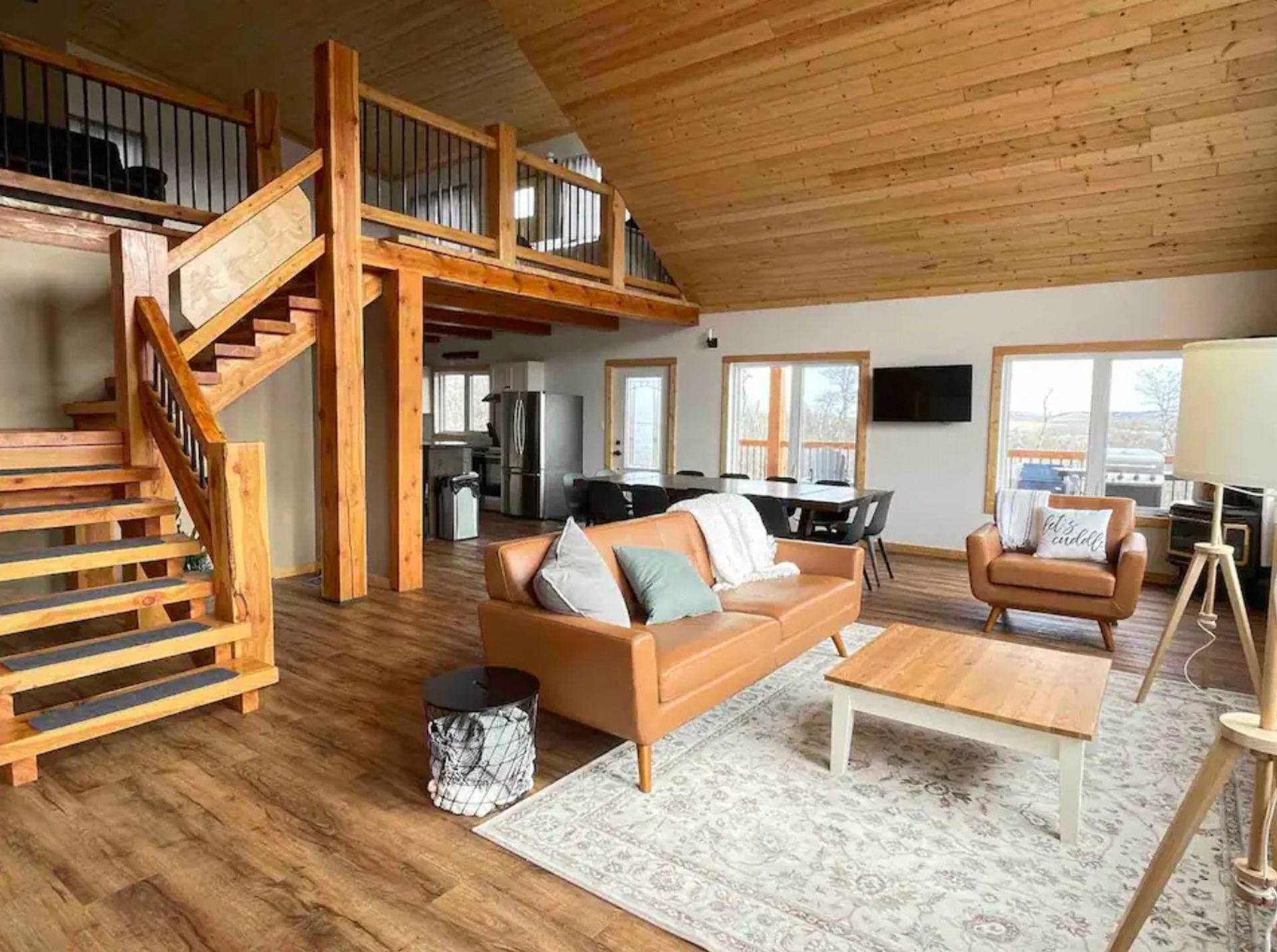 Welcome to the Modern Timber Frame cabin just minutes outside of Castle Mtn Prov Park in Beaver Mines. Bring your family/friends and make yourself at home in this beautiful 4500+ sq ft 6 bed / 6 bath luxury timber escape with outdoor hot tub and cedar barrel sauna! Each bedroom in this home has an attached ensuite bathroom for ultimate privacy. The upstairs loft has a 65" TV with Netflix, Prime, Disney+, and Paramount to kick back after a day of skiing or hiking. The basement includes a movie theatre room and a kids' climbing wall. The home includes a soaker tub, chef's kitchen with stainless appliances and a 12-person dining table, natural gas fireplace, outdoor BBQ, wrap-around timber deck with Adirondack chairs, and parking for 4 vehicles. Pincher Creek is only 10 minutes away for restaurants or stocking up on groceries at the Walmart Superstore Escape to this luxury timber escape today!