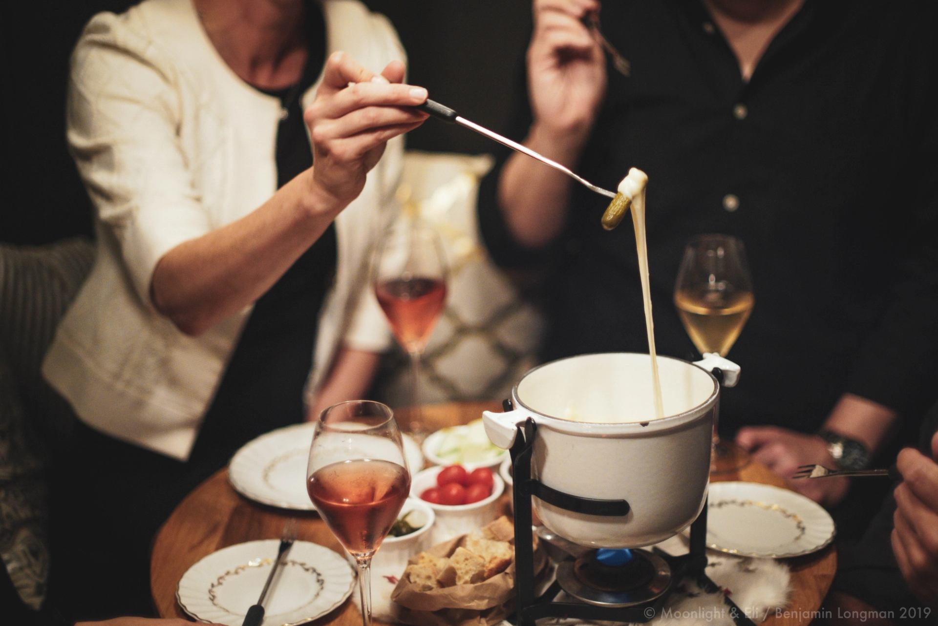 Of course Champagne and fondue, but why Moonlight & Eli? The owner found “Moonlight & Eli”, written in their grandmother’s hand, on a photograph. In the picture were their grandmother, Julia, and their assume, a man named Eli. Taken at Monte Carlo Beach in 1935, Eli was not the man she married. They have no idea who Eli was. Champagne is the drink most associated with love, and love comes in many shapes and sizes, as do champagne glasses. The bubbles of their sparkling wines perfectly cut through the richness of the fondue. Their petite space is the perfect backdrop to your love story. As Monte Carlo Beach was to Julia and Eli, or did he call her Moonlight?
