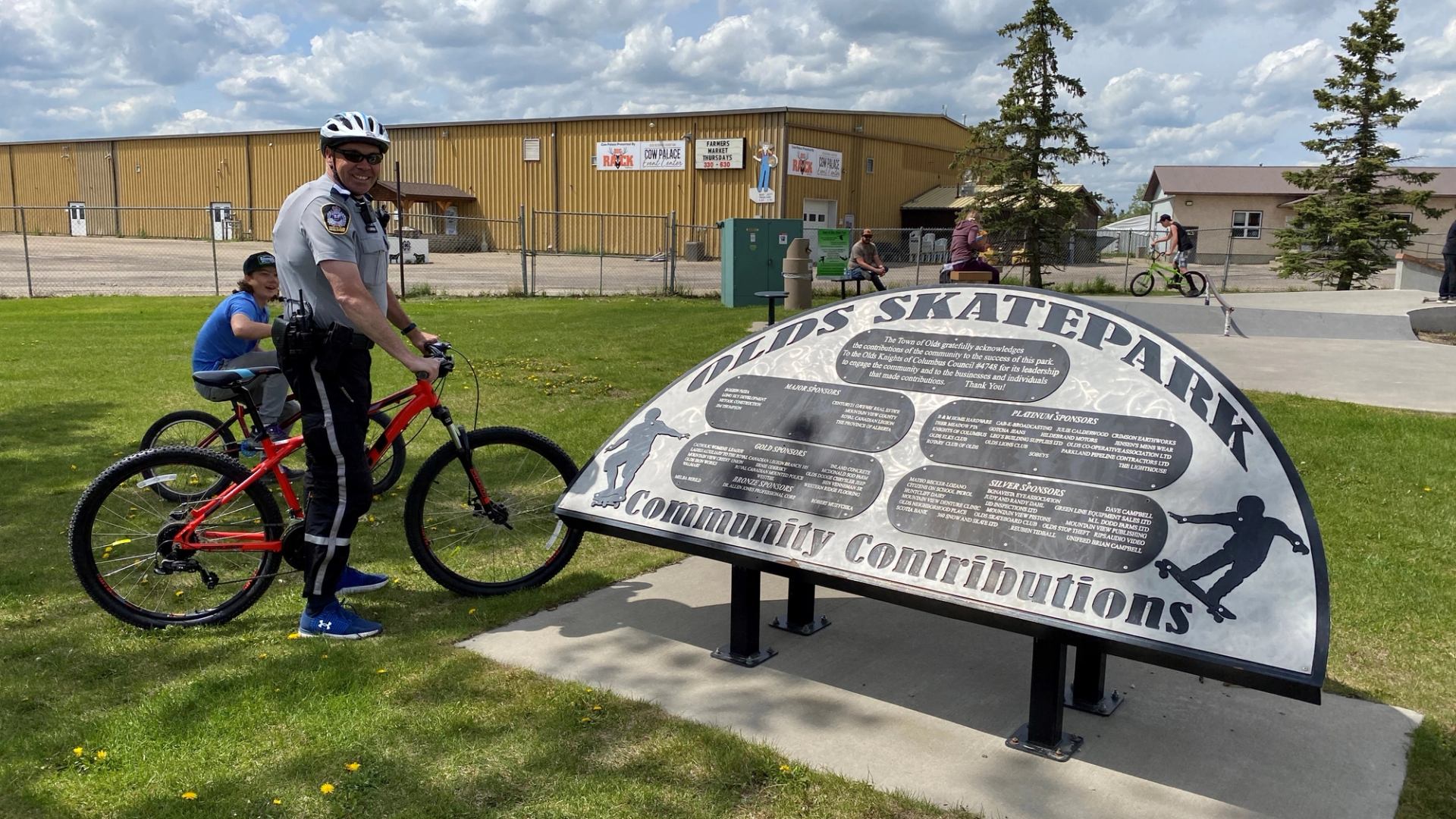 The Olds Skatepark, located in Centennial Park at 5013 54 Street, is a 10,000 sq ft street-oriented park featuring rails, gaps, hips, ledges, stairs, banks, a ride-through mini-ramp section, and pump bumps.