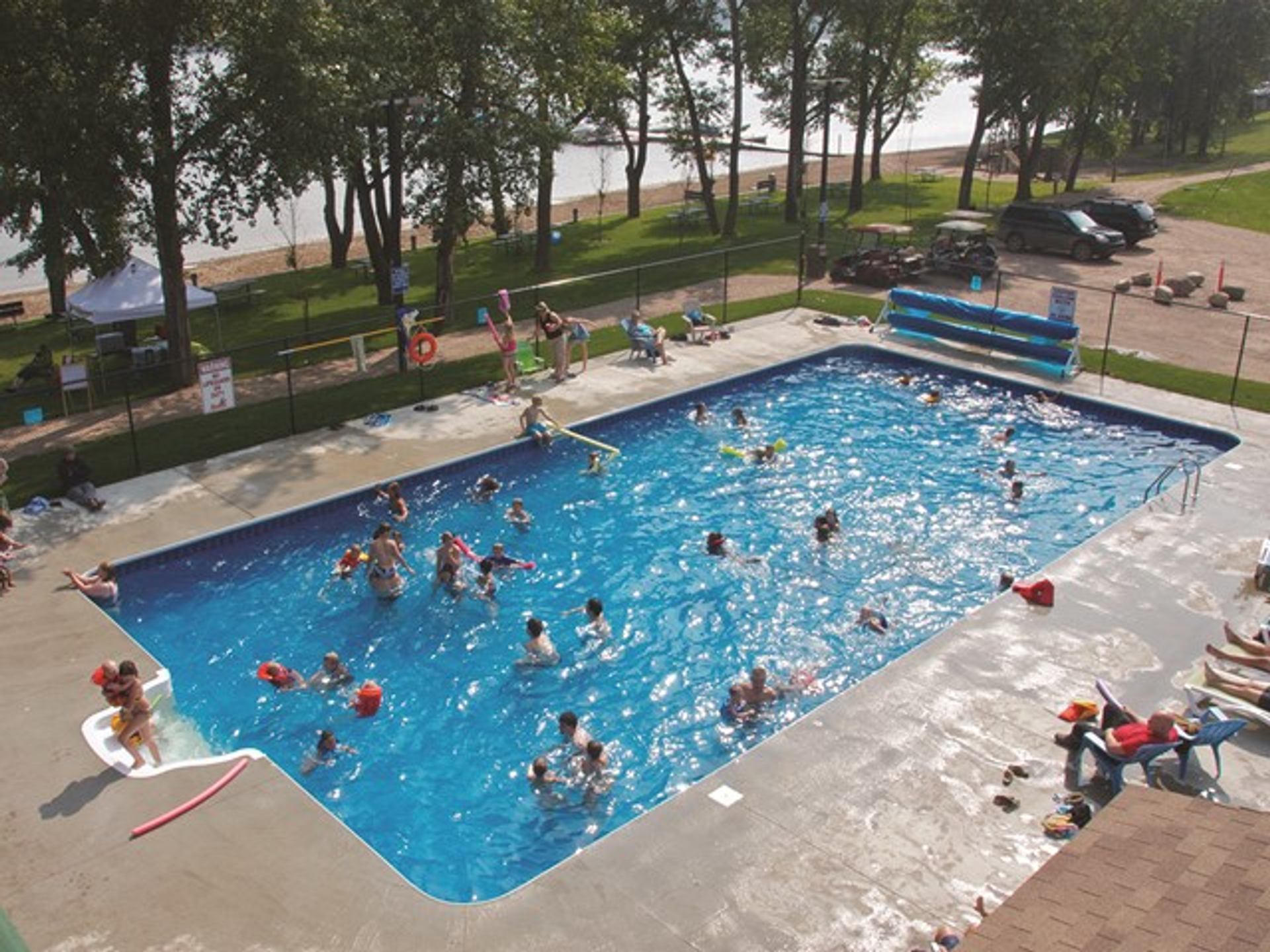 Pine Lake Leisure Resort sits on the shores of Pine Lake, 42 km (13 mi) southeast of Red Deer in central Alberta. The resort is an ideal spot for weekend getaways or as a place to have a summer to remember. The resort is open from May to September and offers a variety of spacious, full-service RV sites. There are also modern two-bedroom cabins for rent on a weekly, monthly or seasonal basis. Wherever you stay, you can enjoy a day at the beach, relax by the heated pool, or let the kids play at one of the three playgrounds. Children can also enjoy the Kids’ Activities Centre, which offers crafts and events for those aged five to 12. Pine Lake Leisure’s other amenities include a store and café, a beach volleyball court, and an arcade. The marina with gas, a boat launch and boat slips makes it easy to get out on the warm and calm waters of Pine Lake. Add it all up and Pine Lake Leisure is a water sports haven for the whole family.