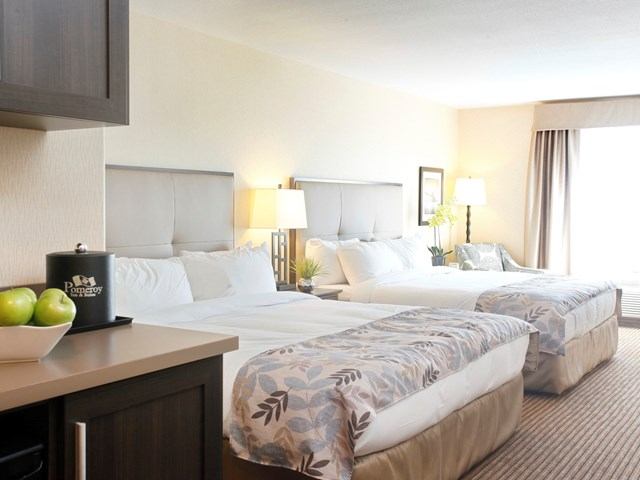 The full-service Pomeroy Inn & Suites at Olds College combines the warmth of a welcoming rural lodge with the modern comforts of a contemporary hotel. Guests can enjoy a deluxe complimentary hot breakfast, a state-of-the-art fitness facility, a pool, hot tub, waterslide, and a fully equipped business centre. Along with these amenities, the hotel offers exceptionally comfortable rooms and consistently friendly service, making it an ideal stay for both business and leisure travellers.