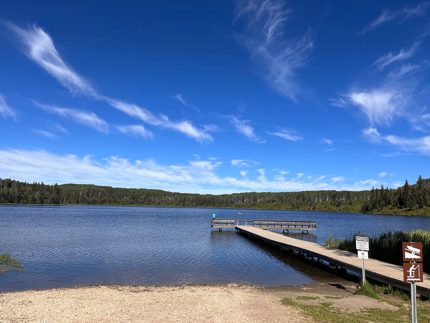 Spring Lake is the perfect location for a day out or a weekend away. Explore the trails, relax on the beach, fish for trout, or spend some quality time with family and friends in the campground. The lake is stocked with both Rainbow and Brook Trout, and the deep pools and bright, clear water result in some record catches. It is the perfect location for year-round fishing trips, with ice fishing events often hosted during the winter months. The trails are also perfect for cross-country skiing or snowshoeing. Non-motorized boats are allowed on the lake, and you will often catch sailors and paddle boarders enjoying the peace and solitude. The Day Use Area is open year-round and features a semi-enclosed gazebo with a wood cookstove, suitable for family gatherings and events. The campground has 66 back-in camping stalls in a forest setting, providing privacy and a natural canopy. Stalls come complete with parking, fire pits, and picnic tables.