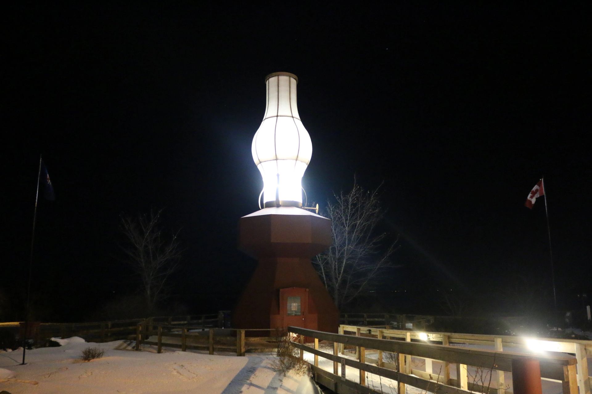 Among Alberta’s “big things in small towns” is the World’s Largest Lamp in Donalda, a small village with a population of just a few hundred. This 13-meter-high (43 ft) steel and fibreglass structure shines brightly every night, overlooking the Meeting Creek Coulee and the northern Canadian Badlands. Located 40 km from Stettler, across the street is the Lamp Museum, home to the world’s largest collection of oil lamps, with over 1,000 lamps dating back to the 1600s. Donalda also offers outdoor activities, including hiking and biking in the Canadian Badlands. The Willow Canyon trail covers 129 acres, from the coulee rim to the valley bottom. For a refreshing break, Buffalo Lake’s beach and campgrounds are just 49 km away.