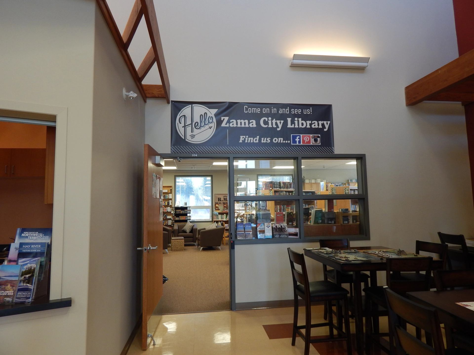 Zama City Library is Alberta’s most Northern Library! Beautiful space where you can curl up by the fireplace, read a book or watch a movie. Join in at their puzzle table, recharge at their electric charging station, enjoy free WIFI, and relax in the Massage chair located in the wellness room. They offer electronic services, books, movies, audiobooks, magazines, cake pans & more. They have over 17,000 items in their collection. Also in the building is a small stroll through the history in Zama City, which was founded in 1966 and the Post Office and Mackenzie County Sub-Office.