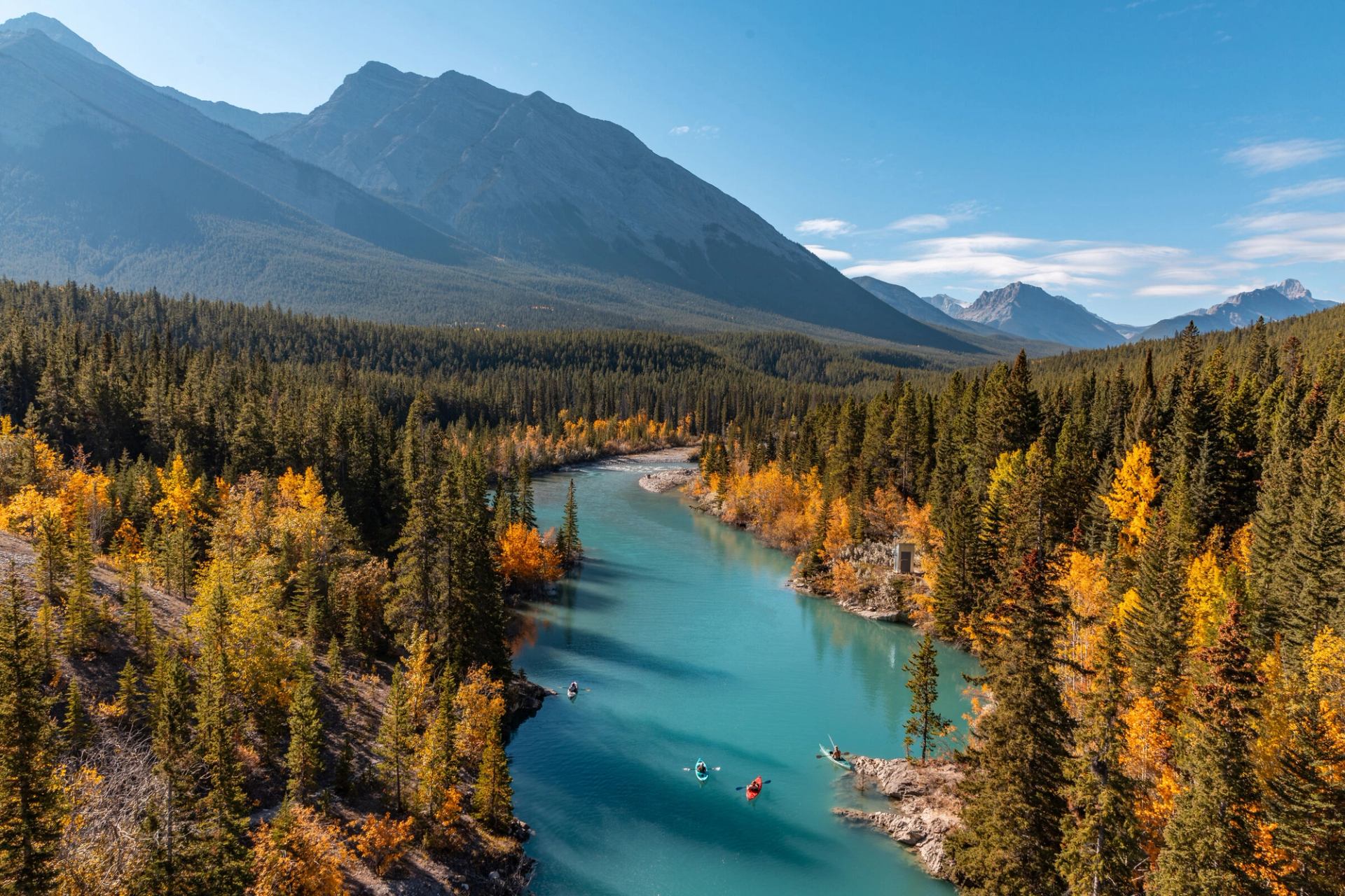 The Bow River originates in the Rockies and flows through Calgary into the Prairies. Locals love it for fishing and summertime rafting.