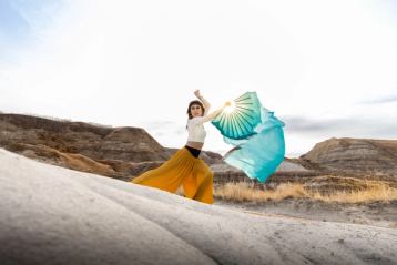 Couple mountain biking in the Badlands in Drumheller
