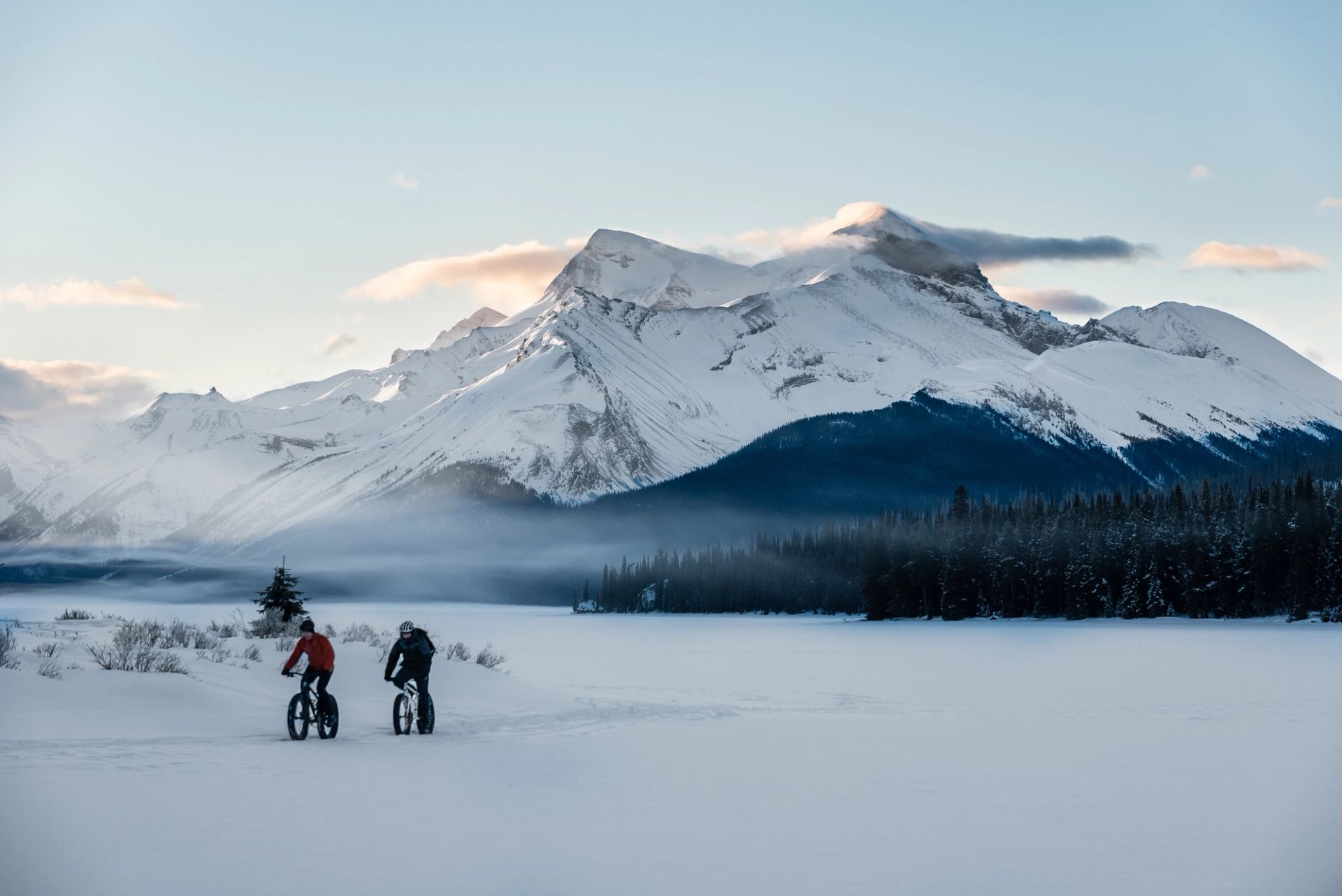 Along the Athabasca River and Pyramid Lake are great options for fat biking close to town.
