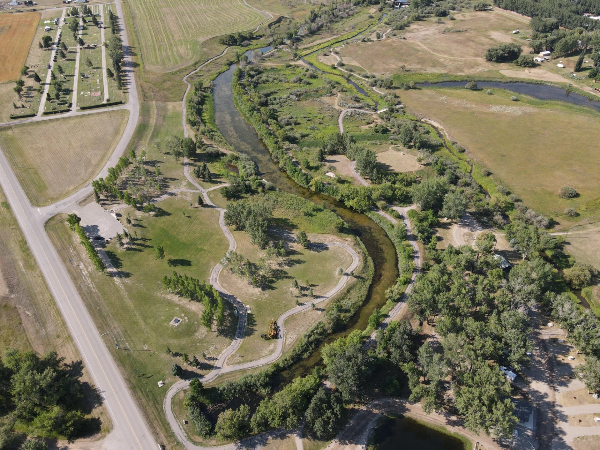 Jubilee Park Campground is a seasonal campground in Magrath Alberta that has some sites with power and some campsites without. A washroom with flush toilets and running water during the summer camping season is available. The Campground is situated next to a playground, fish pond for youth under 16, a historic nature trial, and an 18-hole disc golf course. Nearby the campground is the spectacular Magrath golf course which offers a beautiful and challenging course, also contained within is a great licensed restaurant. The Magrath nature trail takes users along the old canal route and across the historic Headgate for the Galt Canal. This area and its artifacts played a key role in with irrigation and the future settlement of Southern Alberta. The Town in 2021 also opened a brand new outdoor swimming pool. The pool facility has a 25m competition pool, leisure pool, dumping bucket, diving board, spray features, and last but not least - waterslides. Come see the area for yourself! But be warned, many who visit decide to stay.